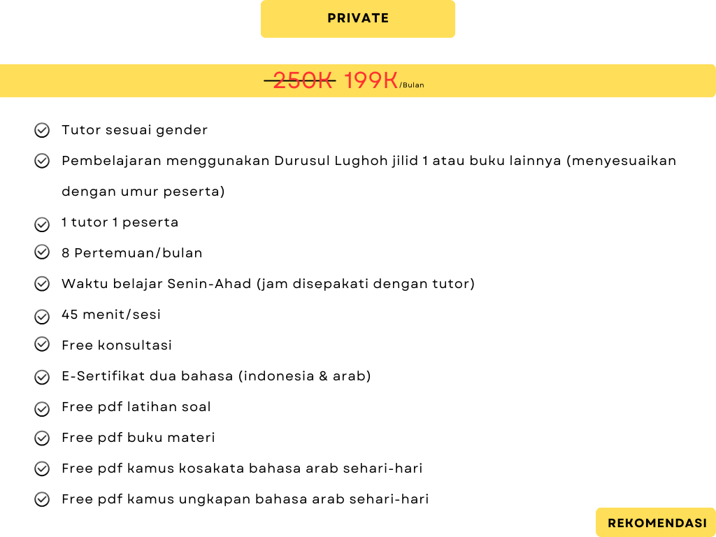 Adapun kelas private akan berlangsung 4-5 bulan karena menyesuaikan denga kemampuan peserta.
