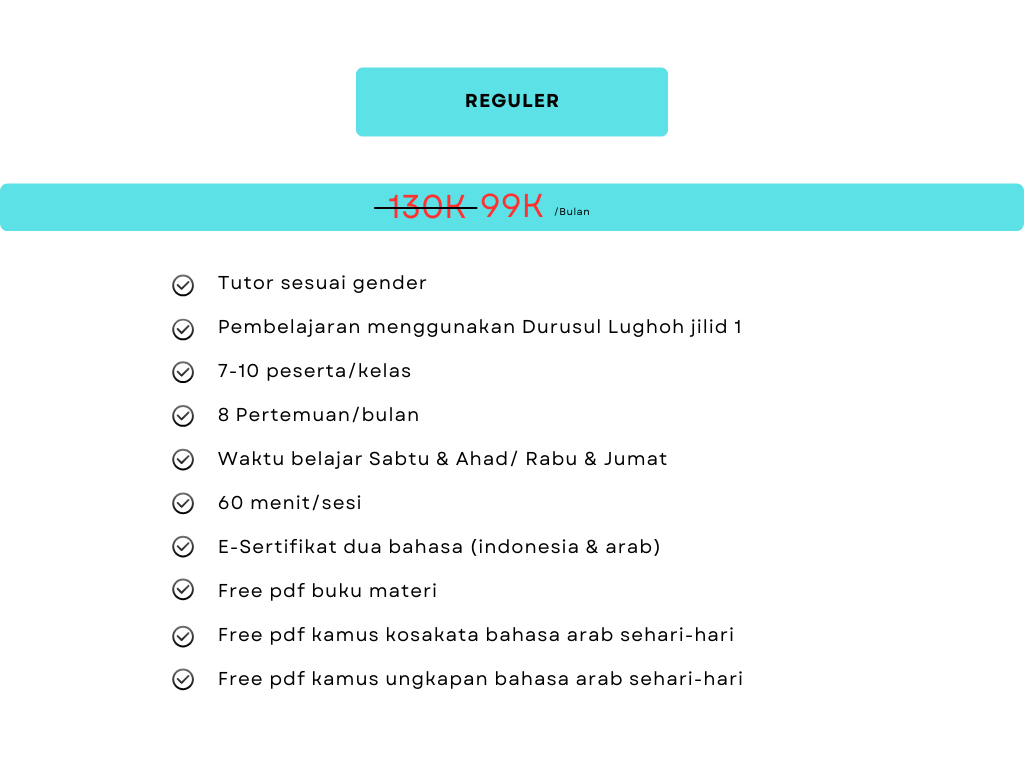Insya allah pembelajarn kelas reguler akan berlangsung selama 4 bulan atau 32 pertemuan.